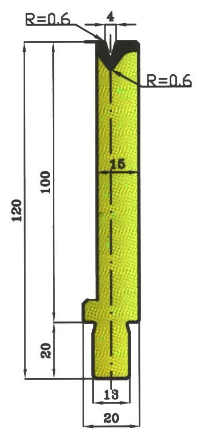 Matrize 30° V4 H: 100mm Länge: 500mm